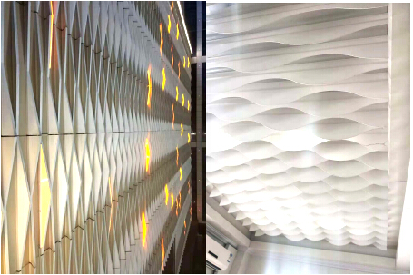 以實現業主的需求或建筑師的理想為前提,根據設計方案的需求,結合金屬加工的綜合工藝,正一建材利用優秀的設計技術力量、領先的進口設備、科學的技術手段定制生產出結構不同,效果各異的造型鋁天花板材。專業的非標尺寸與精心的造型加工,讓設計師的想象力得到最大程度的發揮,更能彰顯其獨一無二的設計風格。
