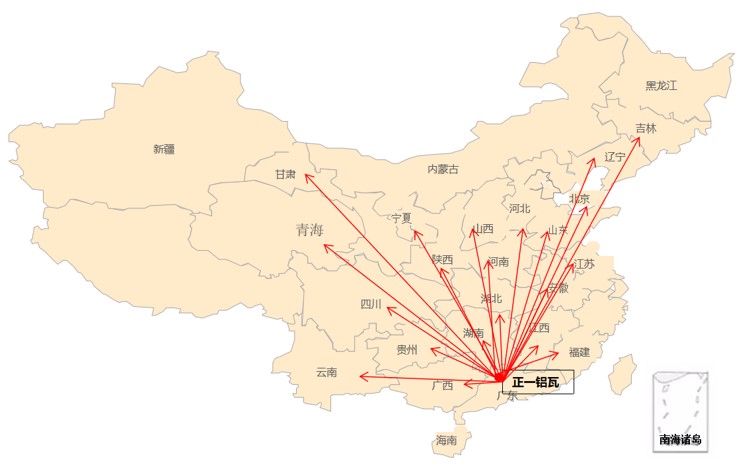 (佛山正一鋁瓦全國輻射區域)
